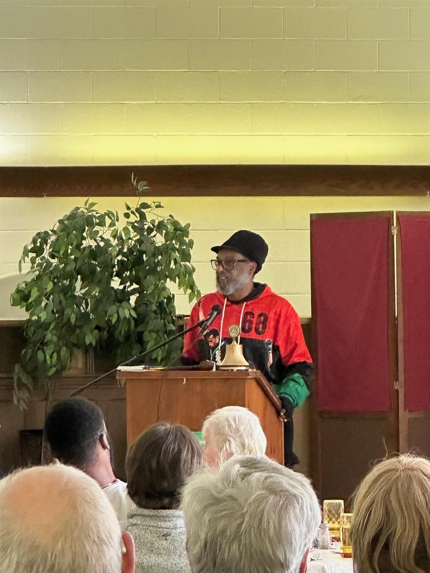 Professor Okantah painted a picture today drawing on the history of the United States and its turbulent past. He wove in his original poetry while speaking, and wrapped up by inspiring us about hope he sees within his students who have friends from all parts of community and society.